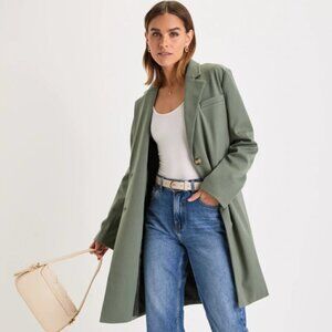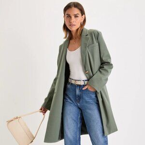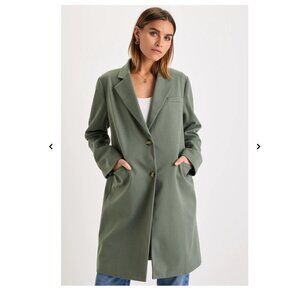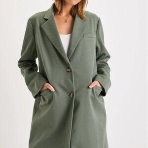 Lulus Chic Silhouette Sage Green Twill Long Sleeve Button-Front Coat Size S