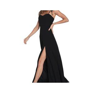 Lulu’s Chiffon Spaghetti Tie Strap Maxi Dress BlackSz Large FLAW #20