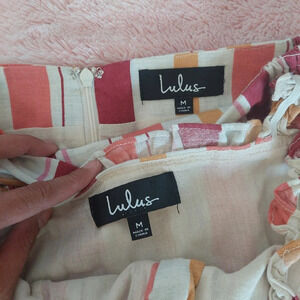 Lulu's Clara Lee Pink Striped Ruffle Crop Top Skirt Set Cotton Size Meduim
