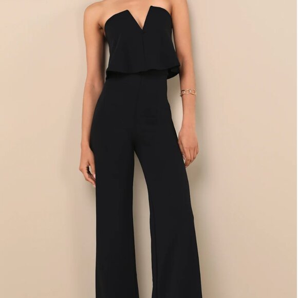 Chic black jumpsuit with a modern silhouette. Perfect for stylish outings.