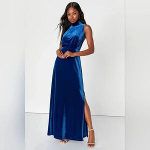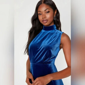 Lulu's Classic Elegance Blue Velvet Sleeveless Mock Neck Maxi Dress L Party. New without tags. See all pictures for details. Currently SOLD OUT online.