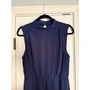 Lulus Classic Elegance Navy Chiffon Sleevless Mock Neck Maxi Dress Large NWT $99