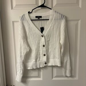 Elegant white button up cardigan, can be styled open and buttoned Size Medium