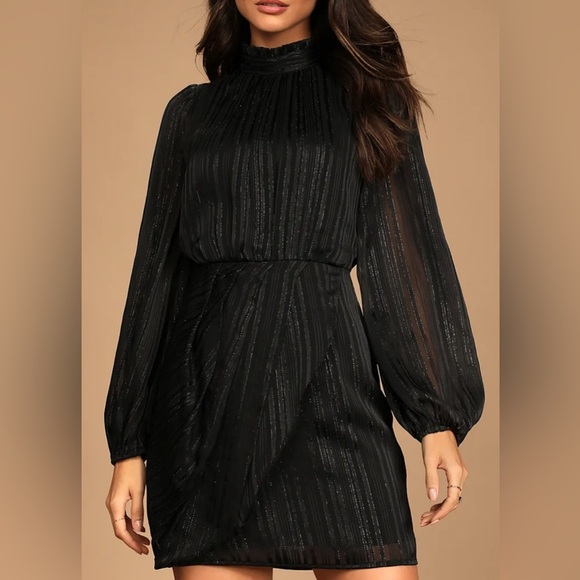 Lulus Cocktail Hour Elegant Striped Black Long Sleeve Evening Dress size XS
