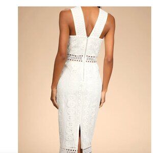 Lulus Cocktail Ready Ivory Crochet Lace Midi Dress White - Size M