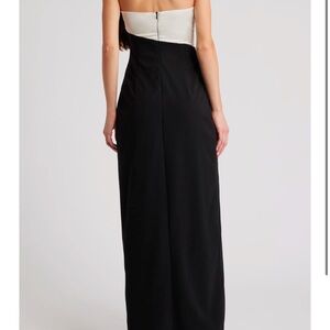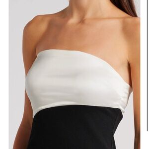 This elegant black and white strapless skirt is perfect for any occasion. Its sleek design and classic colors make it a versatile addition to your wardrobe. This is brand new with tags removed.
