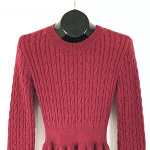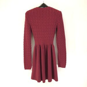 Lulus Comfortable Aura Burgundy Cable Knit Skater Sweater Dress Medium Holiday