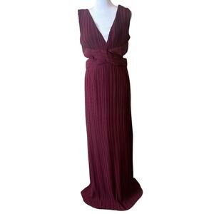 Lulu's Compelling Poise Burgundy Plisse Cutout Sleeveless Gown Size Large NWOT