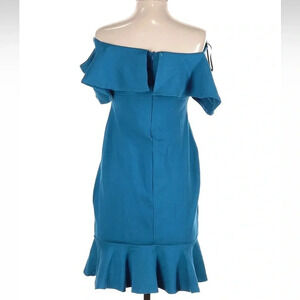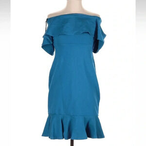 Lulus Confidence Boost Teal Blue Off-the-Shoulder Bodycon Midi Dress Size Small
