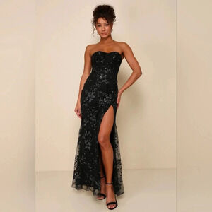 Lulus Confident Sensation Black Sequin Strapless Bustier Maxi Dress XS Wedding NWOT. See all pictures for details.