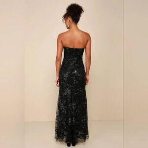 Lulus Confident Sensation Black Sequin Strapless Bustier Maxi Dress XS Wedding