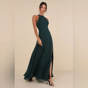 Lulu's Confidently Charismatic Emerald Backless Halter Maxi Dress M Wedding