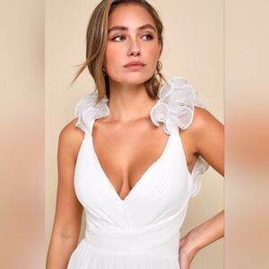 Lulus Contemporary Poise White Pleated Ruffled Lace-Up Midi Dress S Wedding. New without tags. See all pictures for details. Currently SOLD OUT online.