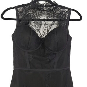 Lulus Contour de Force Bodycon Dress Black Sexy Lace Sleeveless Bustier