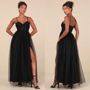 Lulus Convincingly Graceful Black Tulle Sleeveless Maxi Dress Wedding Party. New with tags. See all pictures for details.