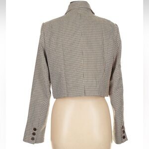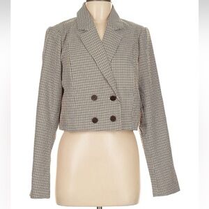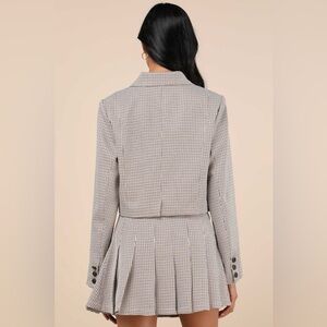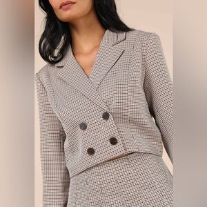 Lulus Convincingly Poised Brown Plaid Double-Breasted Cropped Blazer Size M NWT