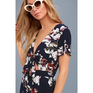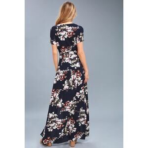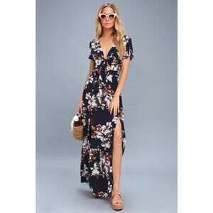 Lulus Cool Cruising Navy Blue Floral Print Maxi Dress