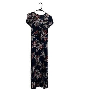 Color: Navy Blue with red (burgundy)/pink/white floral pattern allover