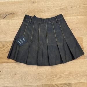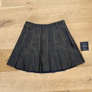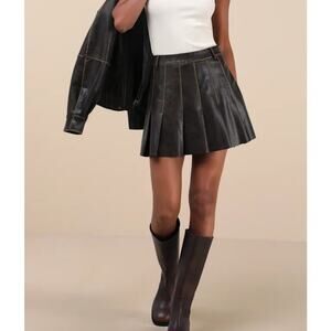 Lulu's - Coolest Era Distressed Pleated Vegan Leather Mini Skirt in Dark Brown