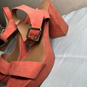 Step out in style with these chic coral platform sandals. Perfect for any occasion, these shoes offer both comfort and elegance.