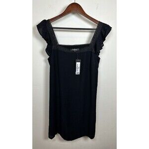 Lulus Country Charm Ruffle Shift Dress Black Size XS NWT Square Neck Mini