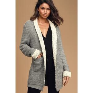 Lulus Cozy Kisses Heather Grey Boucle Lined Open Front Cardigan (S/M)