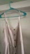 Elegant cream, linen midi dress. Features button-down front. Sleeveless with tiered design. Straps cross in the back. Perfect for casual outings. Worn once.
