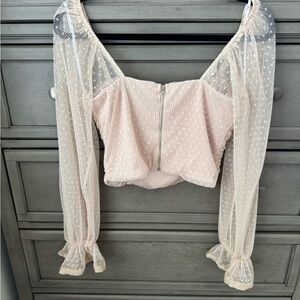 Lulu's Cream Ruched Crop Blouse