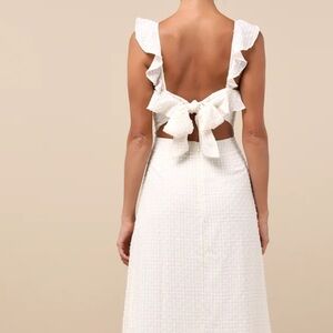 Charming cream gingham midi dress with ruffle details and a little shimmer. Can dress up with heels or down with a denim jacket and sandals or sneakers! Brand new without tags, excellent condition - Never worn, too big and missed the return window.