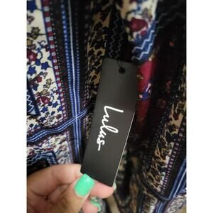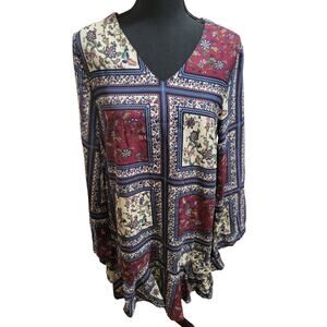 Lulu's Cream and Plum Multi Print Long Sleeve Shift Mini Dress, Sz S - NWT
