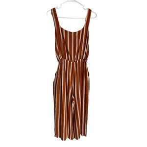 Lulus Crop Jumpsuit Burnt Orange White Striped Pockets Fall Harvest Boho Size XS