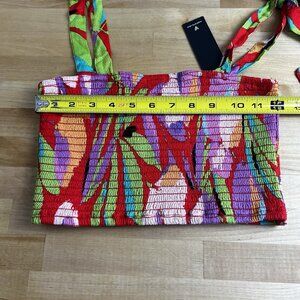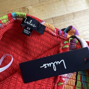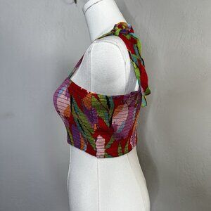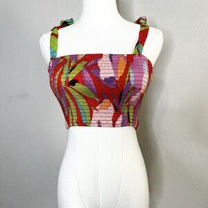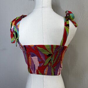Lulus Crop Top Shades of Summer Colorful Tropical Smocked Tie Strap Size XS NEW