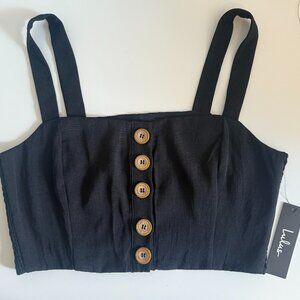 Lulus Cropped Button Front Tank Top Black Size Small NWT