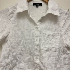 Adorable Lulus White Gauzy Button Front Top. Cropped. 100% cotton. Front pocket. Oversized. Boxy fit.