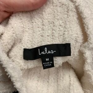 Lulus Cropped Sweater Womens Size Medium Ivory White Fuzzy Knit Mock Neck Long