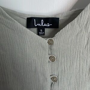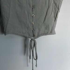 Perfect for summer! Great with shorts, jeans, a skirt - you name it - also works as a quick swim cover up at the beach or poolside! Beautiful detailing and a functional drawstring. Soft sage green in color - looks amazing against a great summer tan!