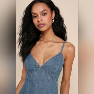 Lulus Crush-Worthy Trend Medium Wash Denim Sleeveless Midi Dress XS Party 90s. New without tags. See all pictures for details. Currently SOLD OUT online.