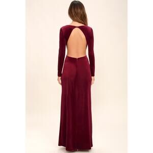 Lulus Crushed Velvet Burgundy Backless Maxi Dress Women’s Size XL