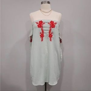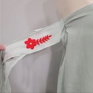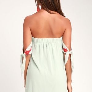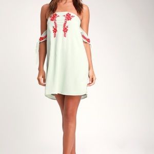Lulus Crysta Light Sage Embroidered Off-the-Shoulder Mini Dress Size Medium