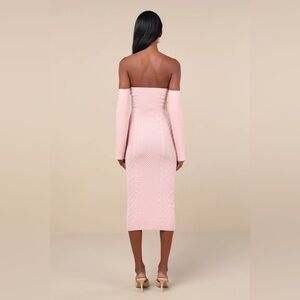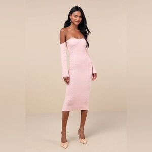 Lulus Cuddly Element Light Pink Cable Knit Off-the-shoulder Midi Dress - Size M