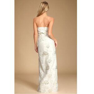 Lulus Cultivated Love White Floral Jacquard Strapless Maxi, #1560596, Sz M, $71