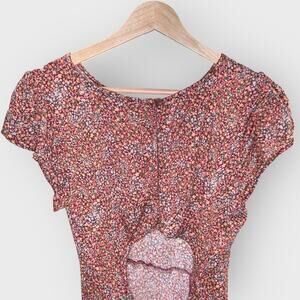 Lulus Cutout Midi Dress Small Burgundy Ditsy Floral Cap Sleeve Cottagecore