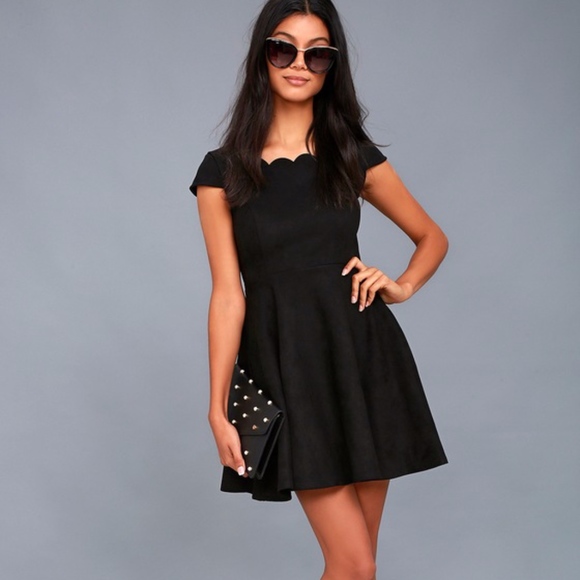 Lulus DREAMS BLACK SUEDE SKATER DRESS