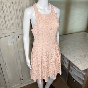 Lulus Daisy Date Blush Pink Lace Skater Pleated Dress Size Large
