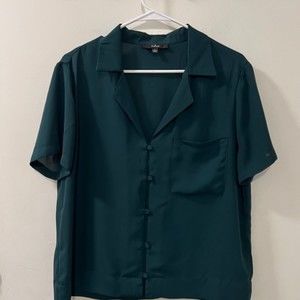 Lulu's Dark Green Button-Up Blouse