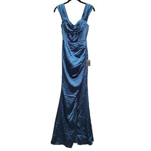 Lulu's Dark Teal Stunning Arrival Satin Off-The-Shoulder Maxi Dress XS NEW