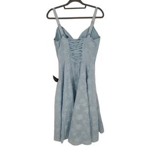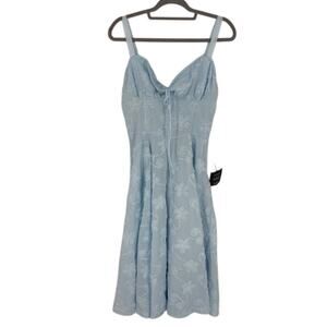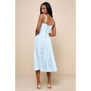 Lulus “Darling Confidence” Light Blue Rosette Bustier Lace-Up Midi Dress – Medium NWT