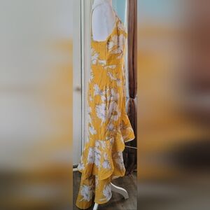 Lulus Darling Daylily Maxi Dress Womens M Mustard Floral High-Low Ruffled NWT