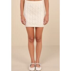 Lulu's Darling Sophistication Ivory Cable Knit Sweater Mini Skirt Sz Medium NWT