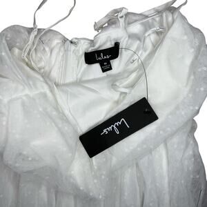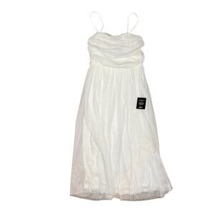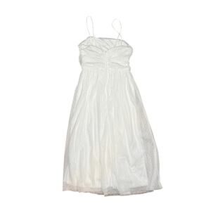 Lulus Darling Sweetheart White Swiss Dot Ruched Midi Dress Size M